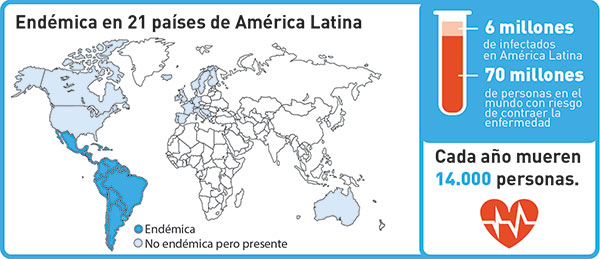 Afecta a entre 6 y 7 millones de personas en todo el mundo, y no solo se extiende por países de América Latina, sino que cada vez se están dando más casos en Estados Unidos, Canadá, Europa y algunos países del Pacífico Occidental.